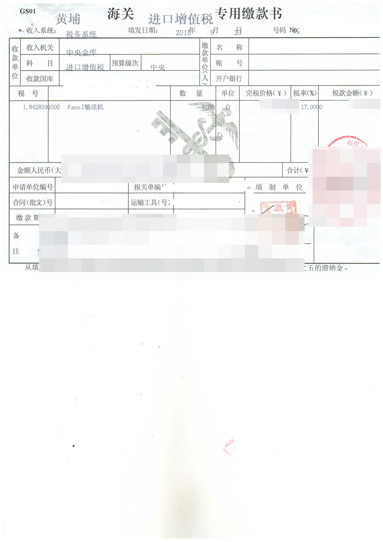 進(jìn)口日期:20150910