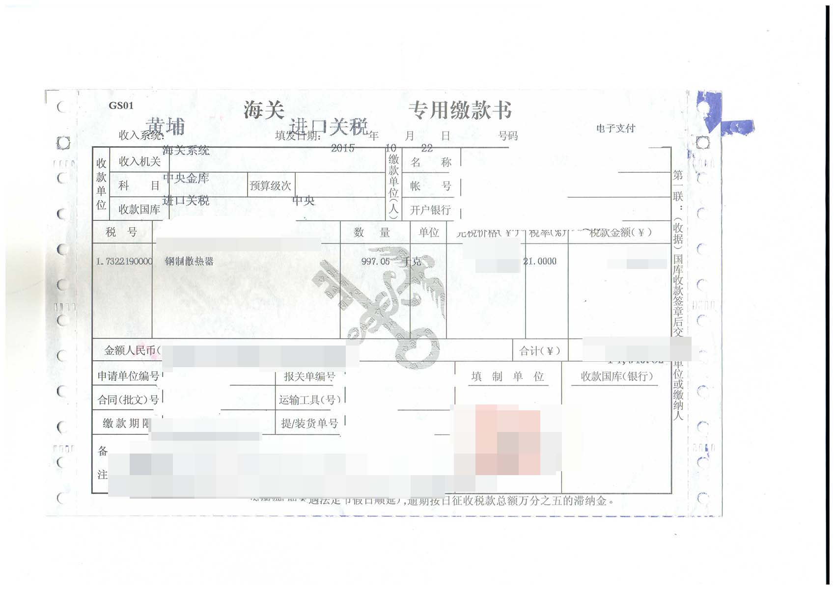 三、鋼制散熱器進口報關案例展示