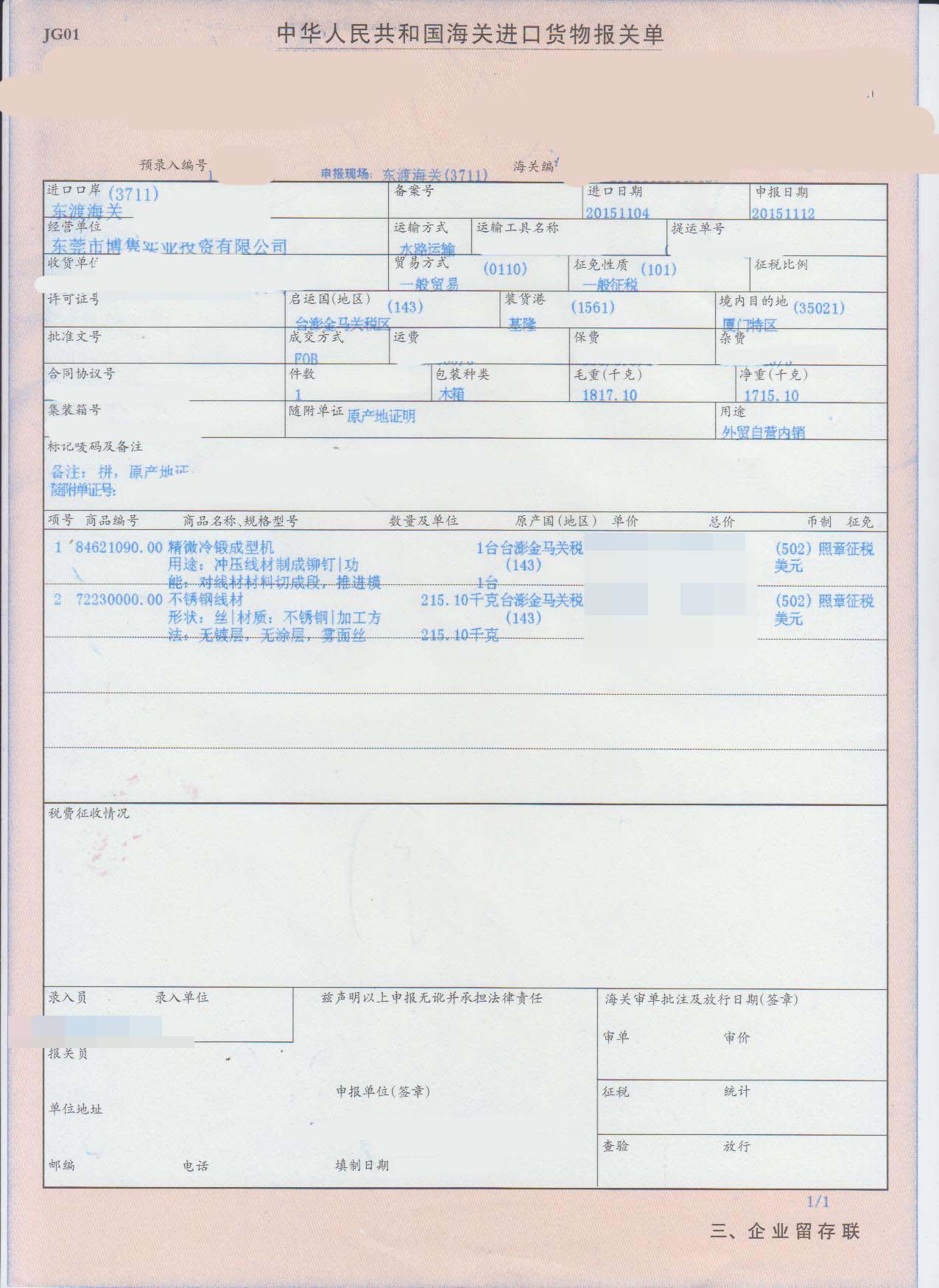 【文章標題】:精微冷鍛成型機進口報關手續及案例【建議收藏】 http://m.bwcailiao.cn/lm9/72.html 轉載請注明出處