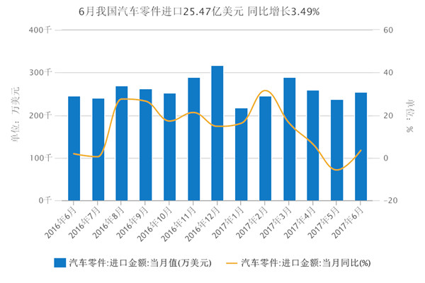 【文章標題】:6月我國汽車零件進口25.47億美元 同比增長3.49% http://m.bwcailiao.cn/news1/178.html 轉載請注明出處